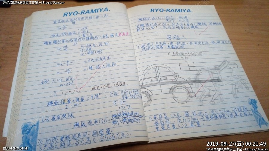 | 內容說明:2019.09.27高職時物理筆記本 | 瀏覽人數: 1444 |