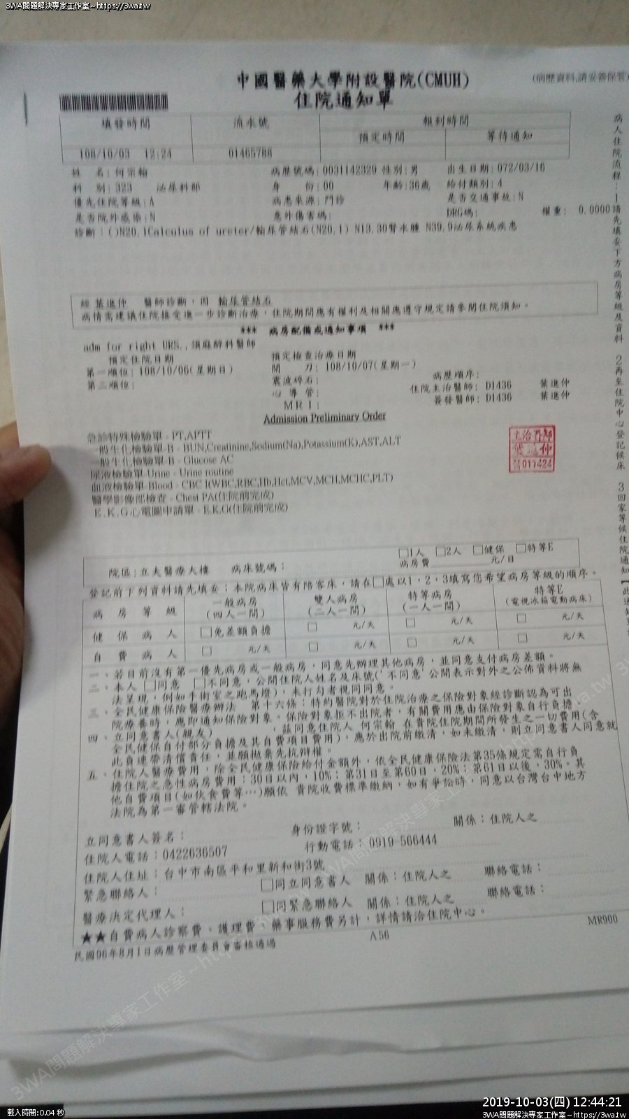 | 內容說明:2019.10.07腎結石開刀 | 瀏覽人數: 1271 |