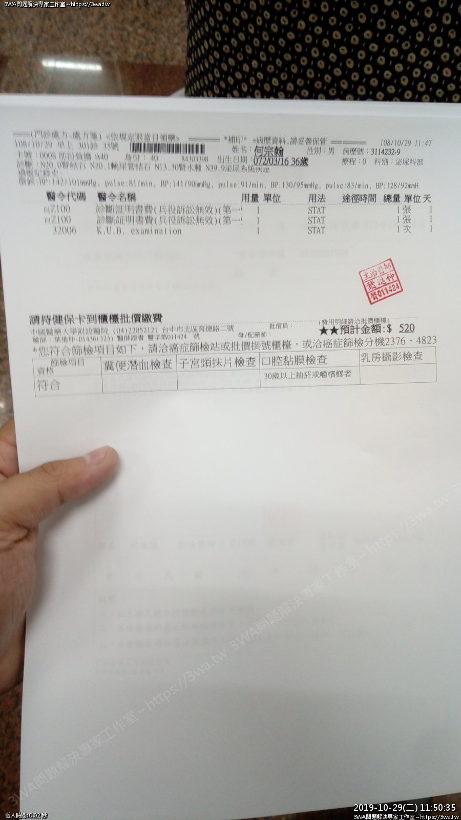 | 內容說明:2019.10.07腎結石開刀 | 瀏覽人數: 1547 |