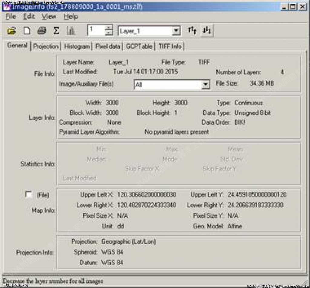 | 內容說明:GeoTiff Header | 瀏覽人數: 1660 |