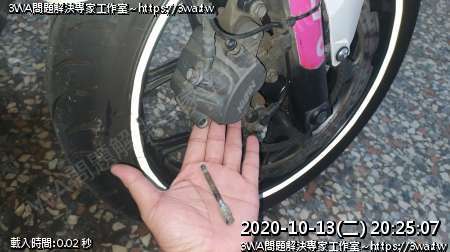| 內容說明:2020.10.13更換NC750S前煞車皮 | 瀏覽人數: 1387 |