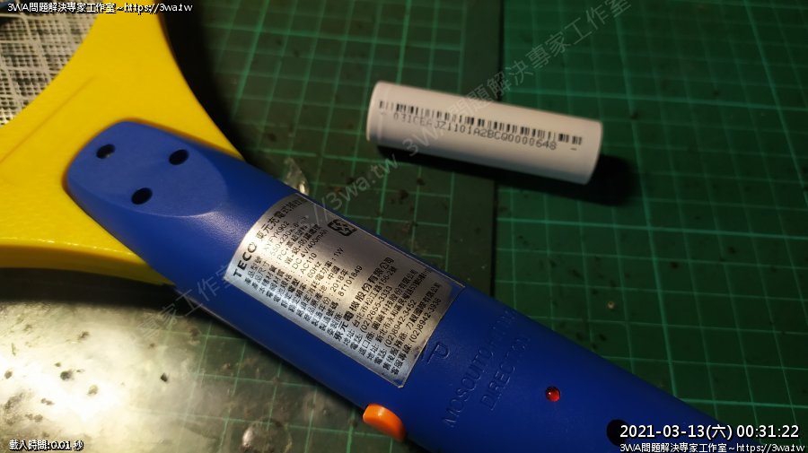 | 內容說明:2021.03.13電蚊拍更換鋰電池 | 瀏覽人數: 1252 |