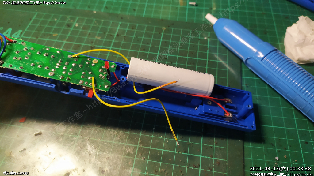 | 內容說明:2021.03.13電蚊拍更換鋰電池 | 瀏覽人數: 1252 |