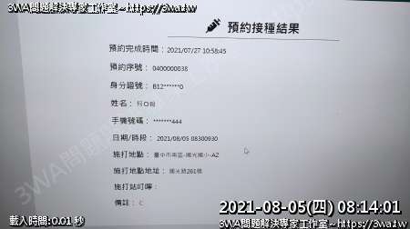 | 內容說明:2021.08.05打AZ疫苗 | 瀏覽人數: 1210 |