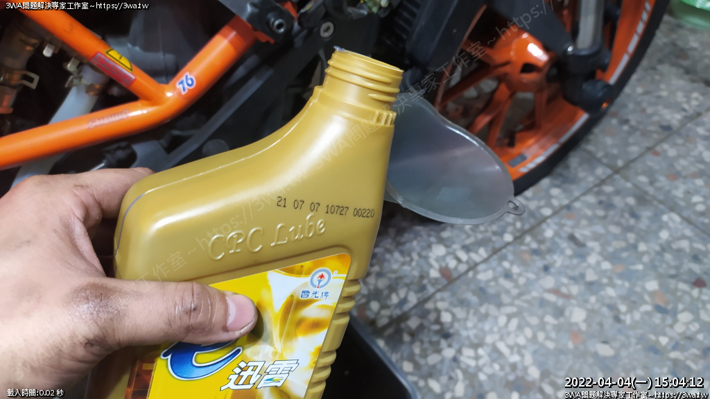 | 內容說明:2022.04.04KTM RC390換機油 | 瀏覽人數: 971 |