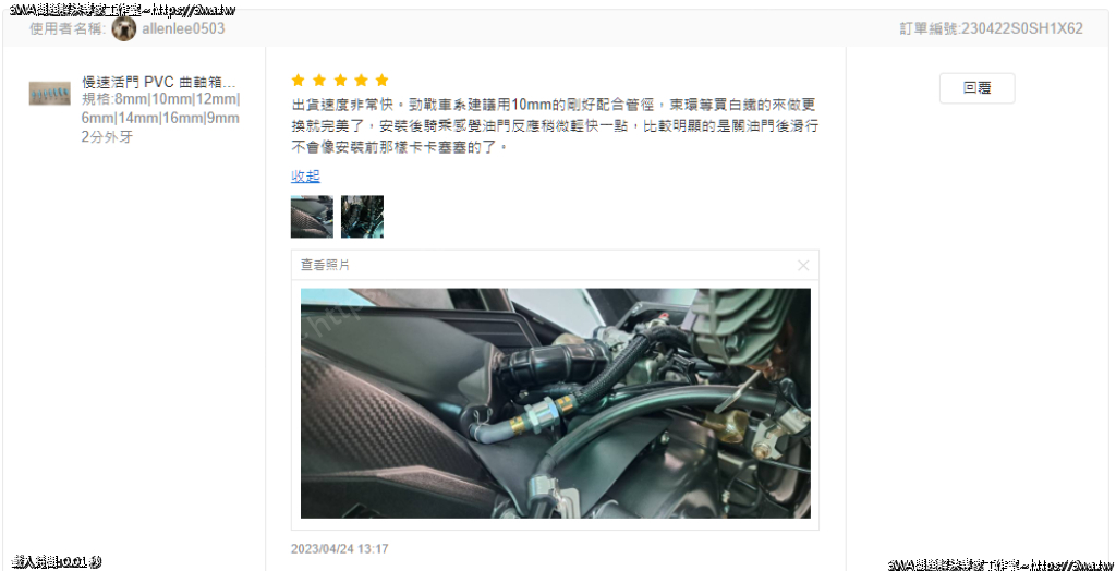 | 內容說明:2023.04.24勁戰單向閥 10mm 感謝車友 allenlee0503 分享 | 瀏覽人數: 531 |