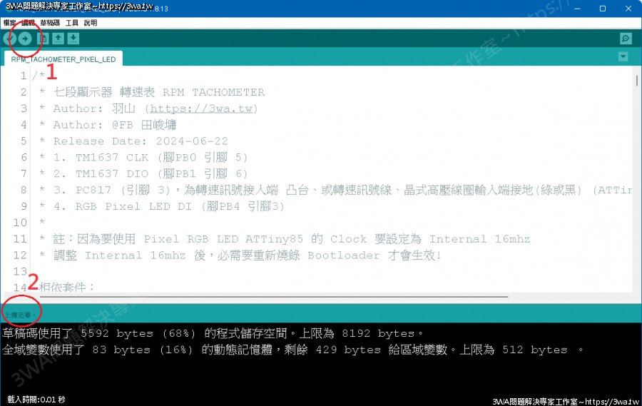| 內容說明:2024.06.23 ATTiny85 WS2812B 機車轉速表 | 瀏覽人數: 607 |