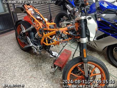 | 內容說明:2024.08.31 KTM Duke390 引擎裝上車 | 瀏覽人數: 547 |