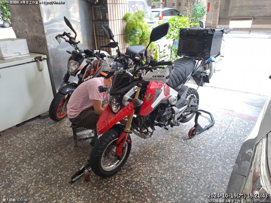 | 內容說明:2024.10.18MSX125 更換前輪軸承 | 瀏覽人數: 529 |
